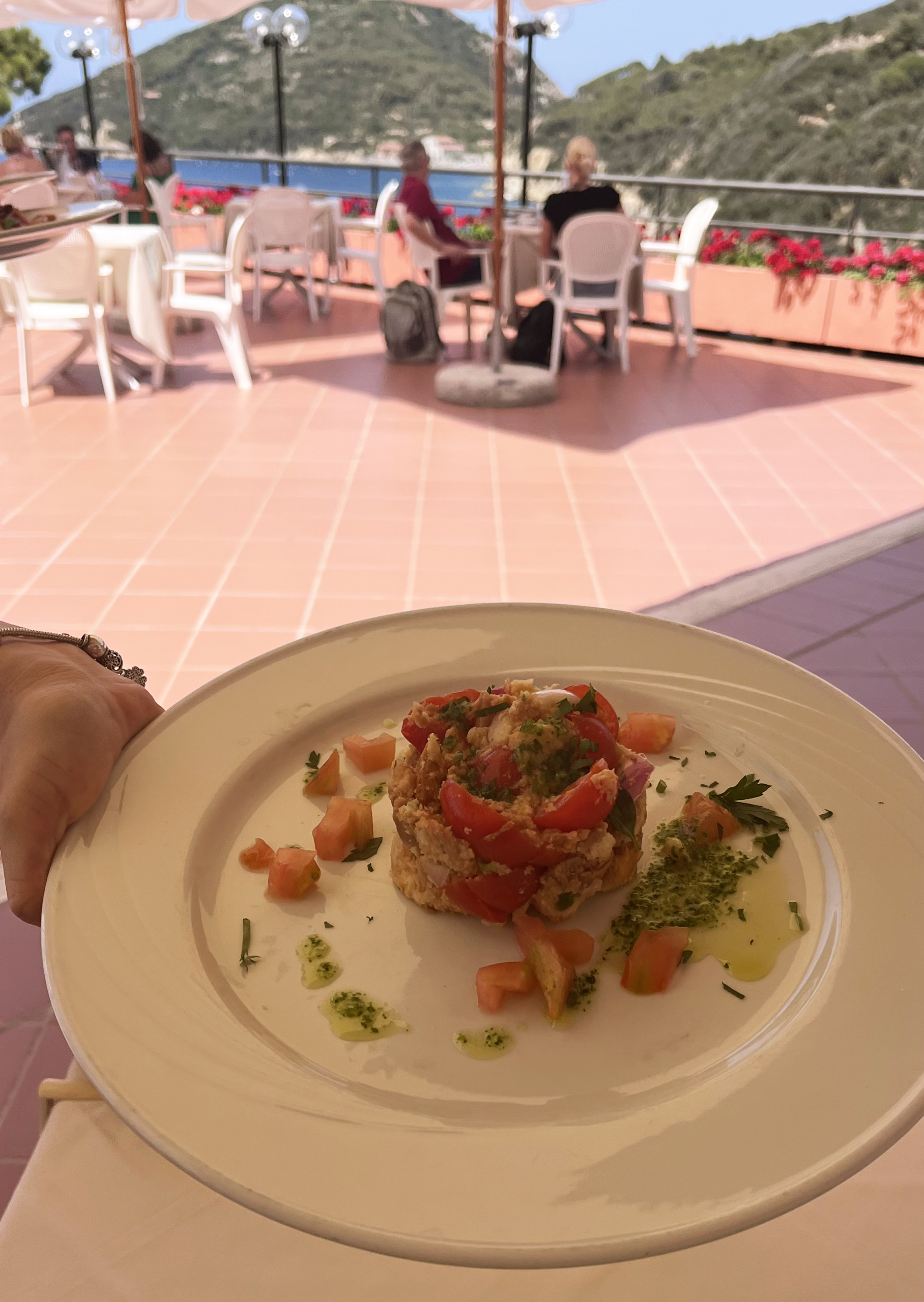 Sulla terrazza panoramica, all’ora di pranzo troverai una selezione di specialità di mare con pescato e prodotti rigorosamente freschi, sfiziose insalatone estive e dolci fatti in casa dal nostro chef. Alla sera un menu bistrot sempre diverso ogni giorno con piatti a base di pesce o carne conditi con spezie e aromi della nostra Isola. Il tutto curato e servito anche nella versione Gluten-free (A.I.C).